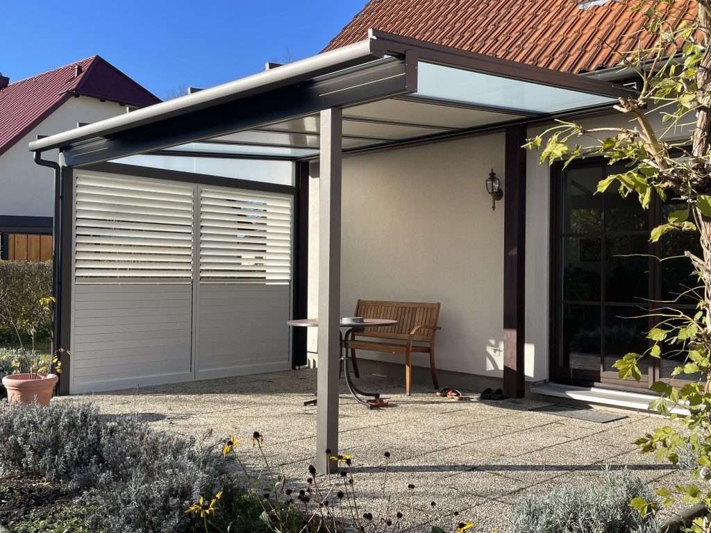 Ob als Flachdach oder mit schräger Dachneigung: Unsere Terrassenüberdachungen